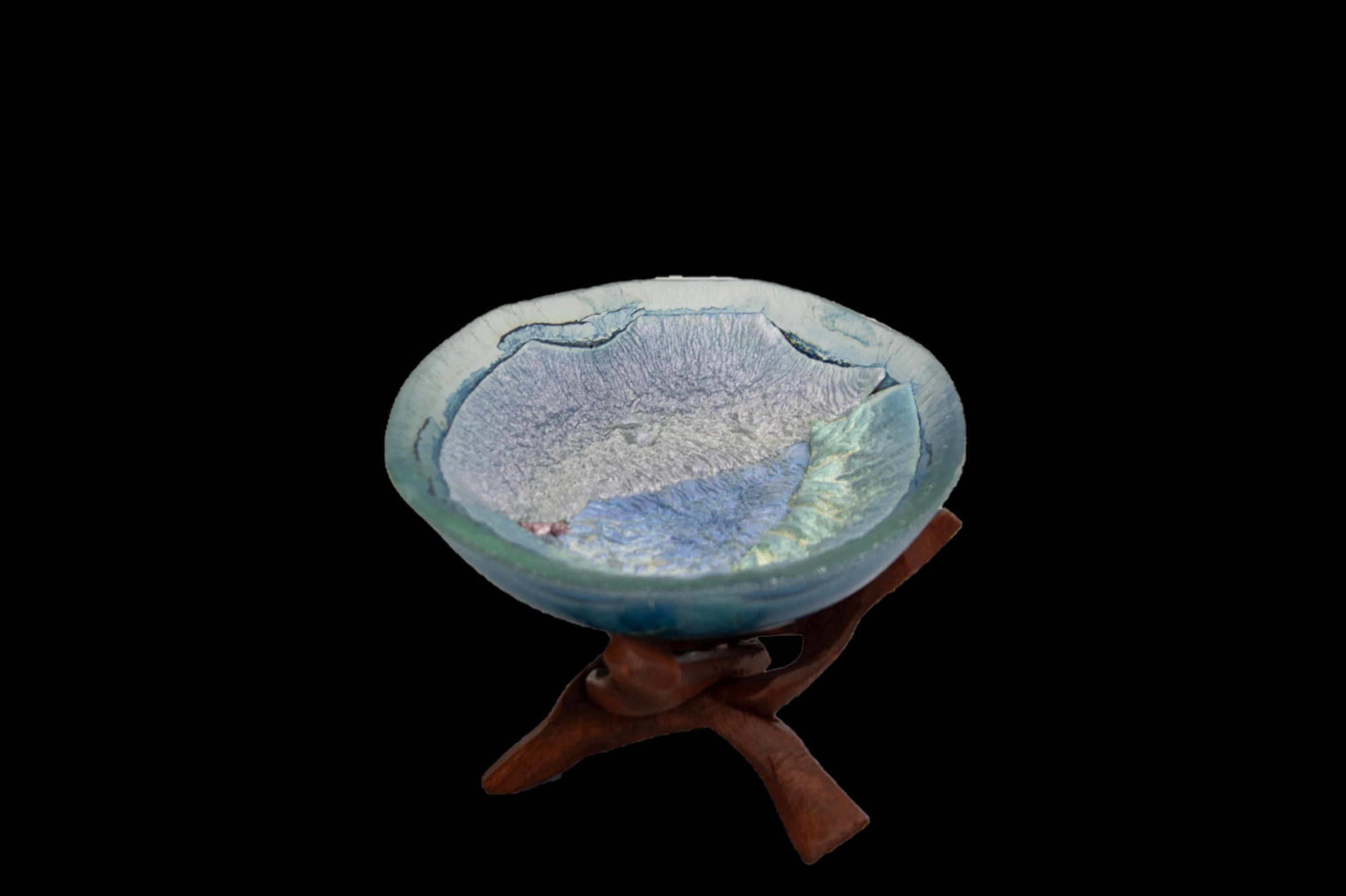 With so many species of flora and fauna living in the rainforest, its easy to see where the artist’s inspiration is drawn from. Fuan’s passion for plants is not only shown in his revisions of art but can be viewed firsthand in one the many gardens he’s fostered. The definition that is unique to Mother Nature is mimicked in his work. This collection speaks to his affair with the tropics and the progeny of the rainforests. This series is comprised of small bowls depicting his love for the tropical rainforest, abundance of plant life and the various bodies of water found in his beloved country!